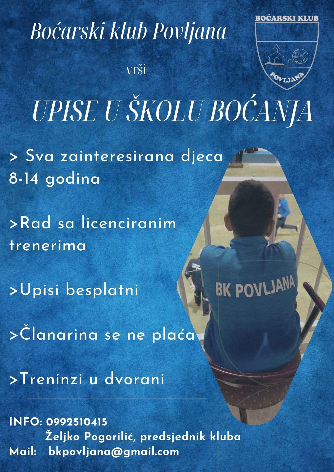 Boćarski klub Povljana poziva sve zainteresirane djevojčice i dječake u dobi od 8 do 14 godina da se upišu u Školu boćanja u Povljani.